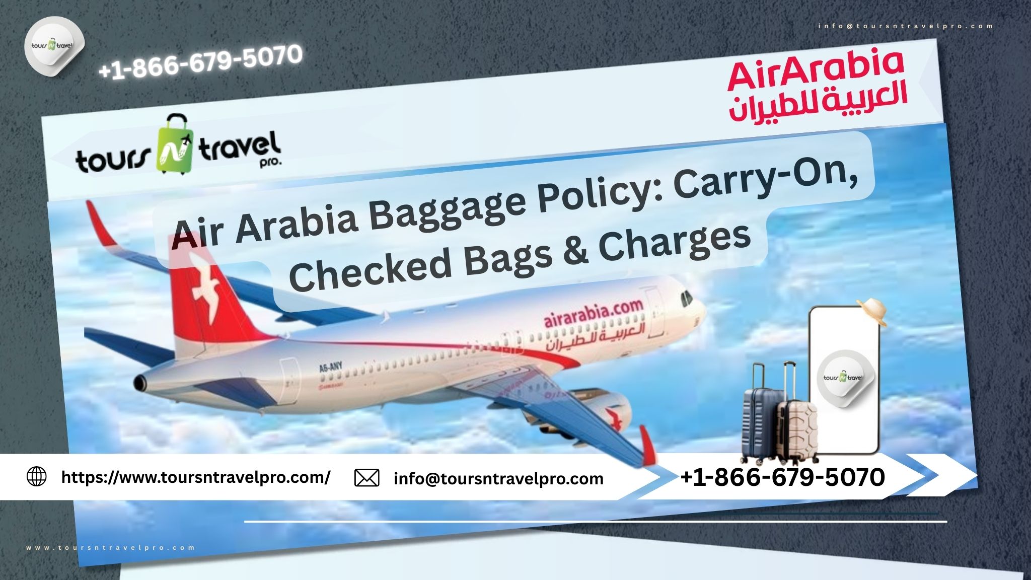 In this detailed guide, we will explore everything about the Air Arabia baggage policy, including carry-on rules, checked baggage limits, excess baggage charges, special baggage guidelines, and helpful packing tips. If you need assistance with baggage booking, flight reservations, or baggage upgrades, you can contact Tours N Travel Pro at +1-866-679-5070 for support.
