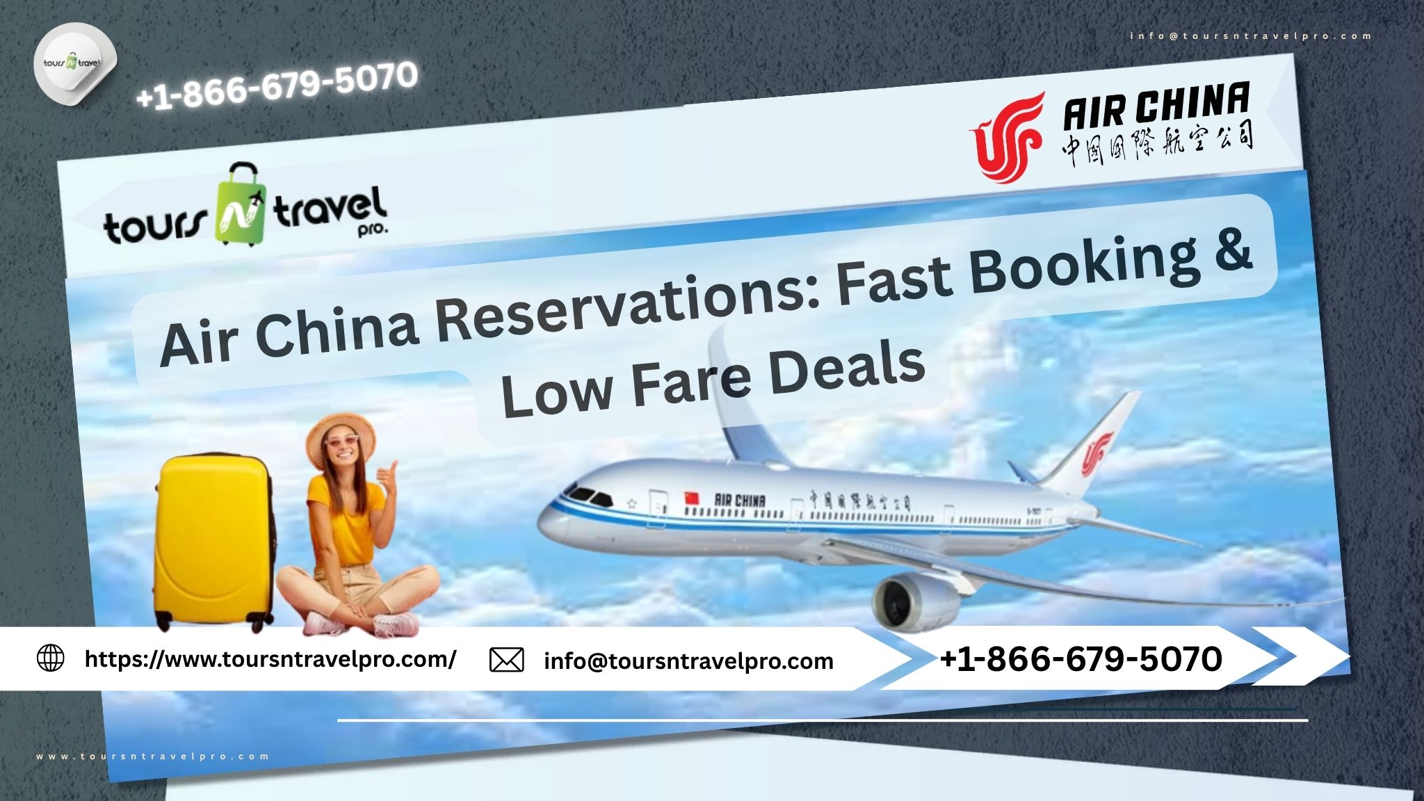 Whether you’re traveling for business, leisure, or a special occasion, Air China reservations provide flexibility, comfort, and global connectivity. For hassle-free booking and expert guidance, don’t hesitate to reach out to Tours N Travel Pro at +1-866-679-5070.