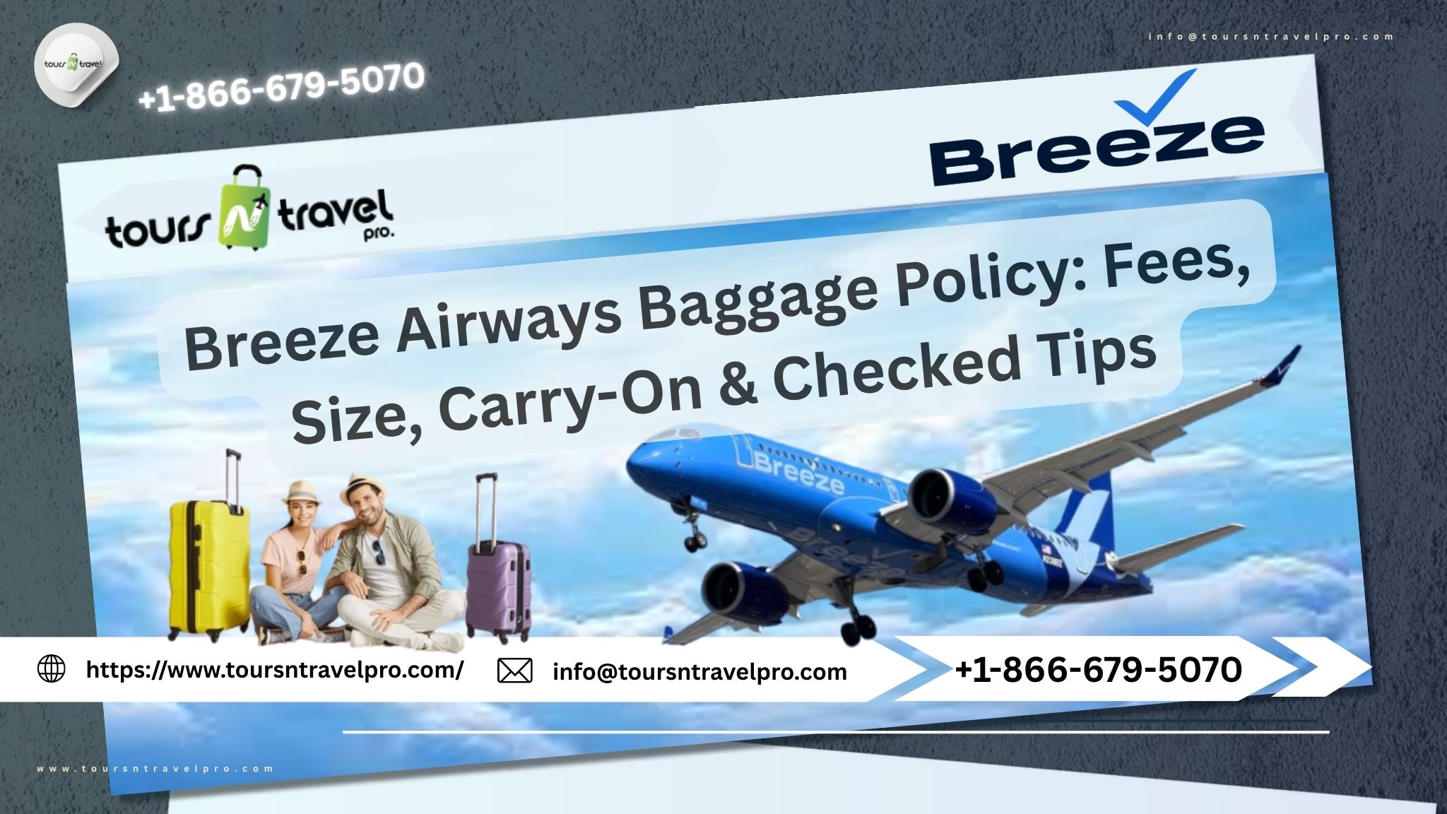 This comprehensive guide covers everything you need to know about the Breeze Airways Baggage Policy, including carry-on rules, checked baggage fees, special items, and pro tips to avoid unnecessary charges. If you need quick assistance, you can also contact Tours N Travel Pro at +1-866-679-5070 for expert help.