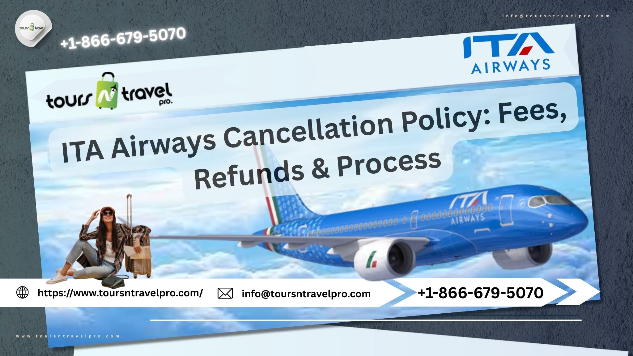 You can call ITA Airways or reach out to travel experts like Tours N Travel Pro at +1-866-679-5070 for guided cancellation assistance.