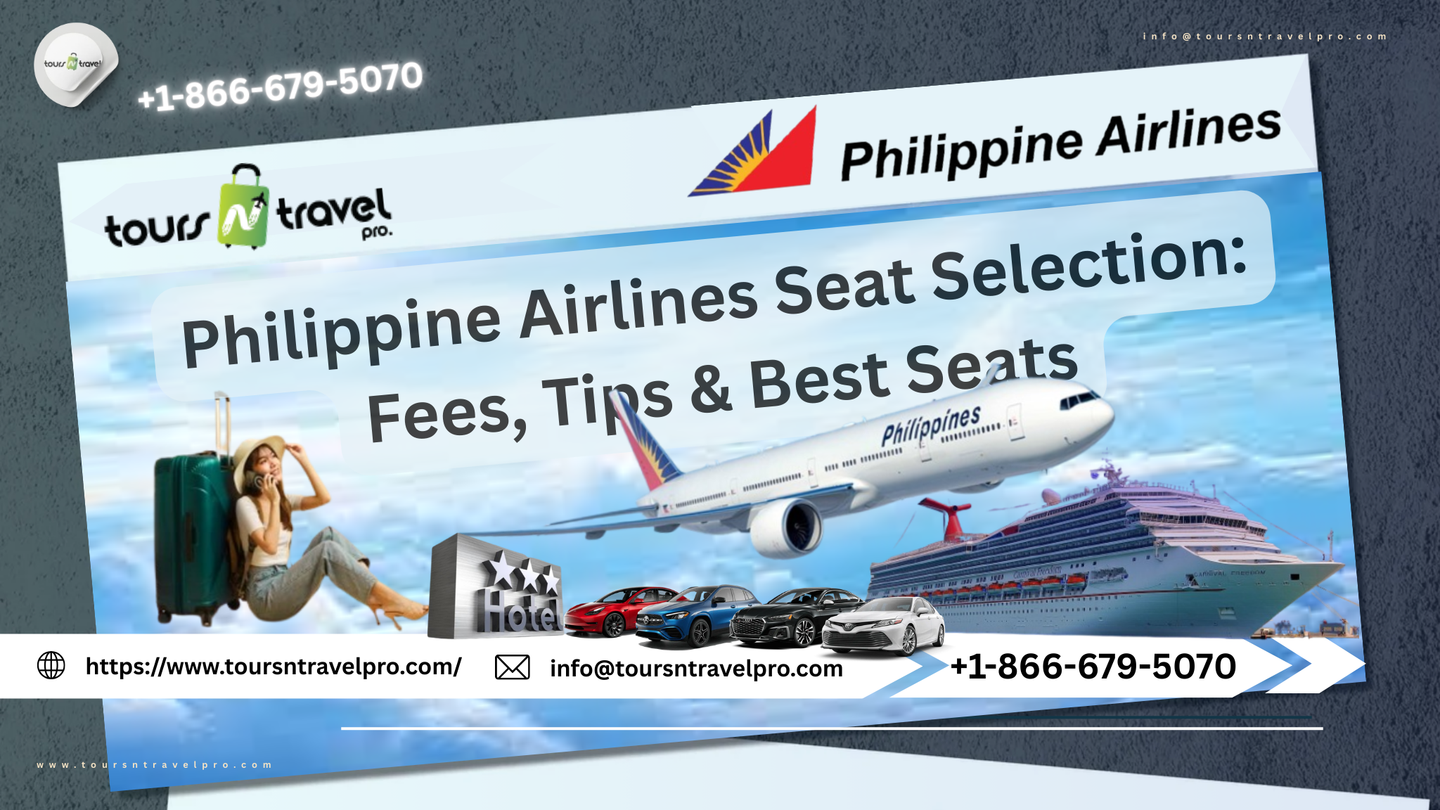 In this detailed guide, we’ll walk you through everything you need to know about Philippine Airlines seat selection, including options, fees, tips, policies, and additional travel services like hotels, cruises, and car rentals. For personalized assistance, you can also contact Tours N Travel Pro at +1-866-679-5070.